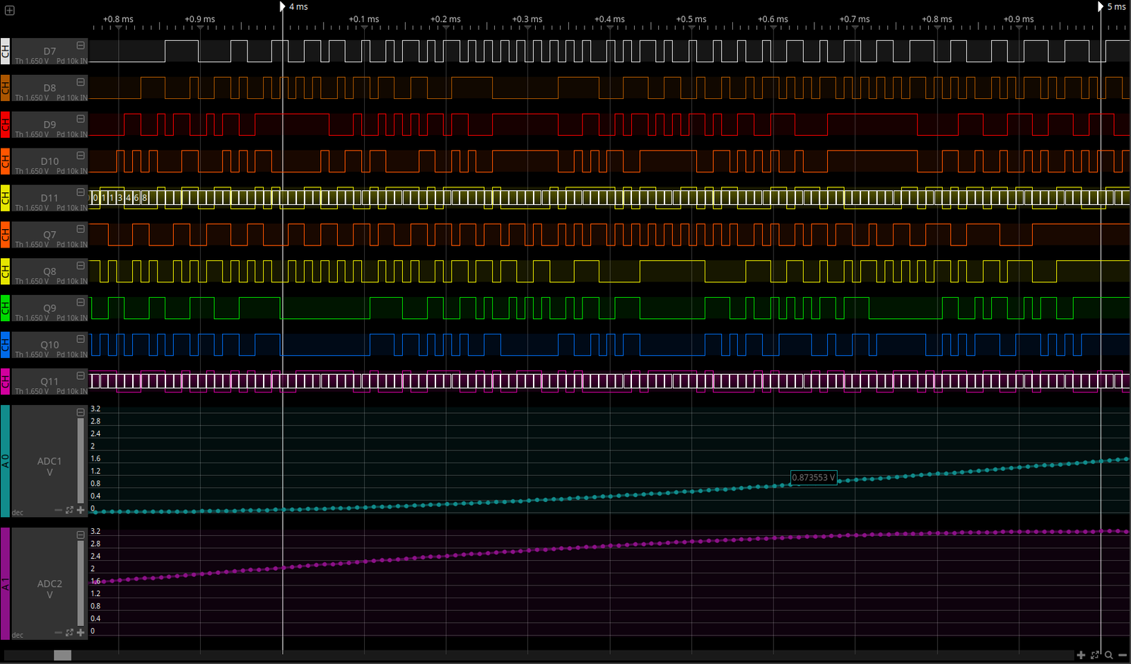 - Capture your ADC data lines using your Ikalogic logic analyzer